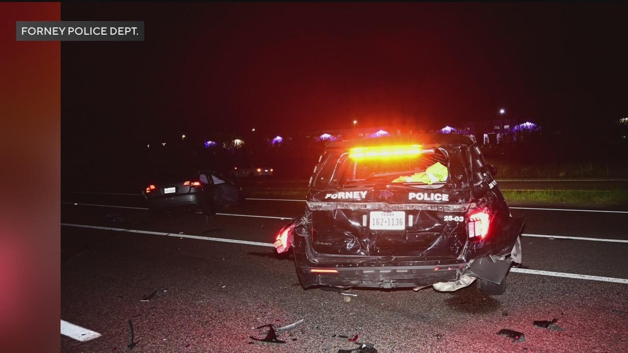A rideshare passenger was critically injured after a rideshare driver crashed into two Forney police vehicles that had been positioned on U.S. Highway 80 to divert traffic from an earlier major wreck. Police released photos showing heavy damage to both units. Officers were redirecting drivers around the crash scene when the rideshare driver, who had a passenger onboard, struck the parked patrol vehicles. The passenger was taken to the hospital in critical condition, and the driver was also hospitalized. No officers were hurt.