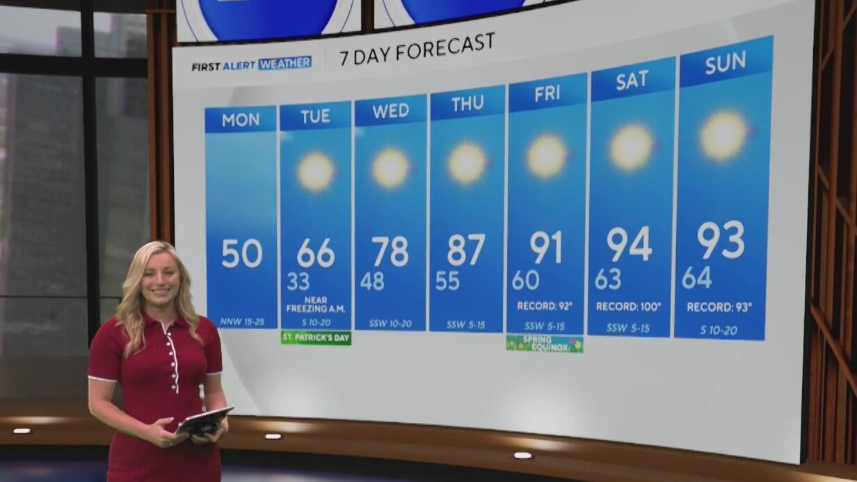 Monday starts chilly and breezy, prompting a fire danger warning across the area. However, beginning Tuesday, temperatures trend upward until the end of the week.
