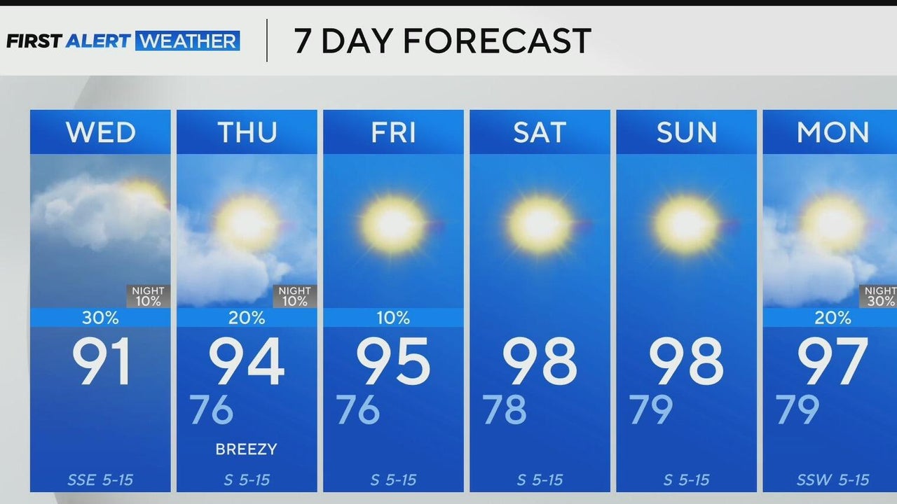 Scattered showers possible as temperatures remain in the 90s across North Texas