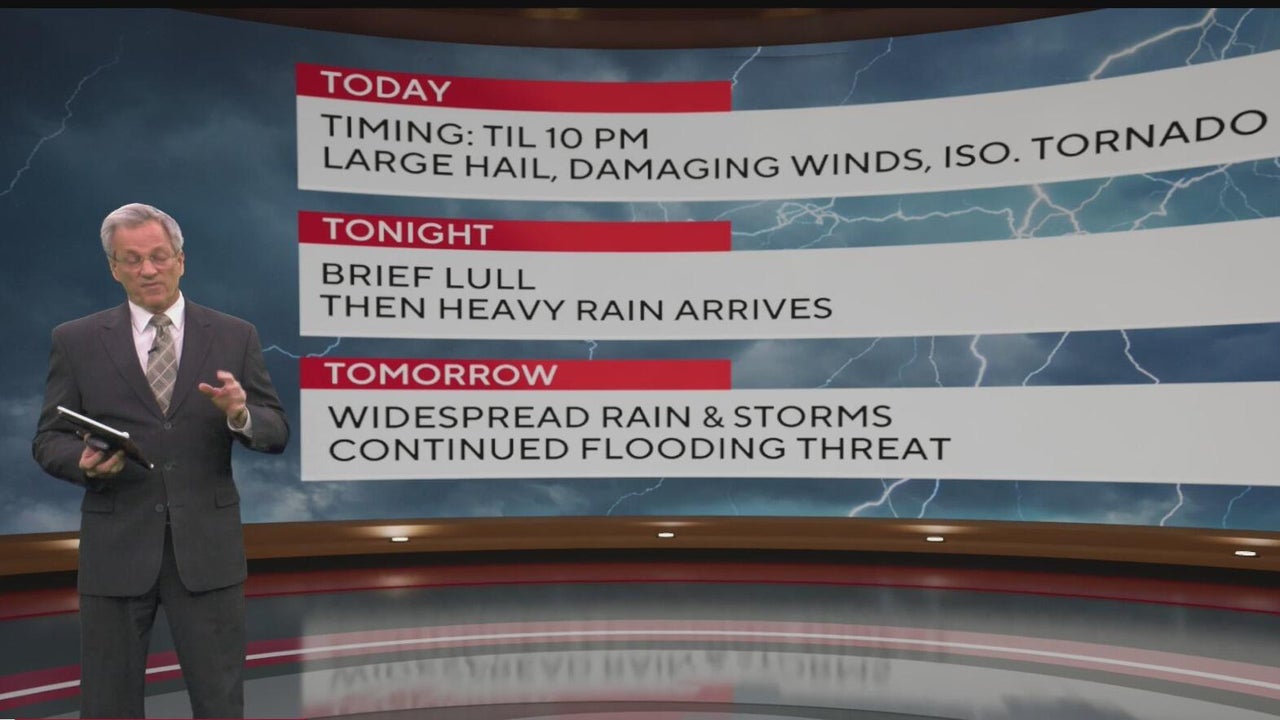 North Texas is under a First Alert Weather Day as severe storms threaten through 10 p.m., with risks for large hail, damaging winds, and isolated tornadoes. A brief lull is expected overnight before heavy rain, and another round of possible severe weather returns early Friday. Widespread rain and flooding concerns continue into the first half of the day.