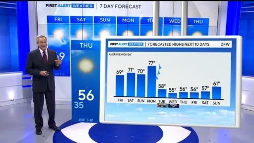 North Texas faced heavy thunderstorms, flood warnings and tornado watches on Thursday, leading to significant flooding. However, the weekend promises pleasant weather with temperatures in the 70s, reaching the upper 70s on Monday before a cold front arrives.