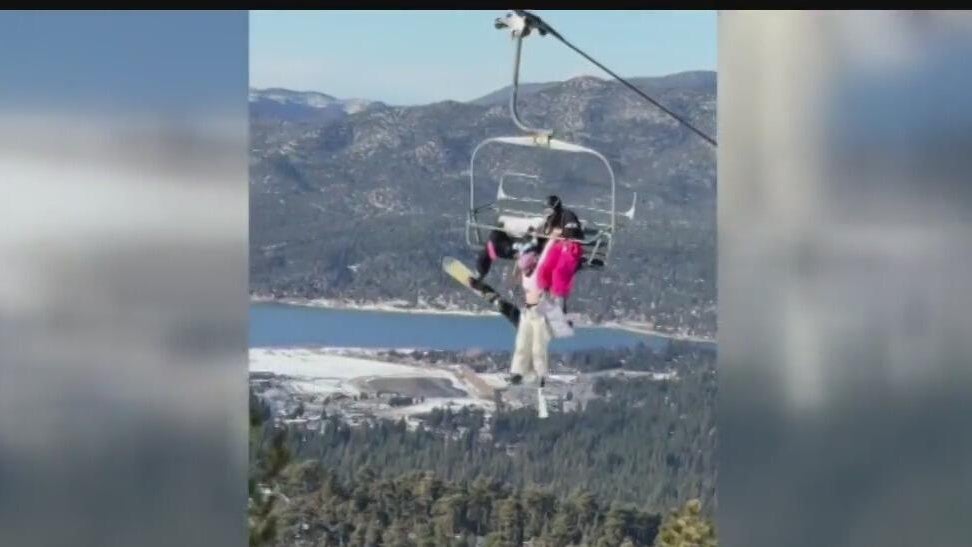 A skier at Big Bear Mountain in California slipped off a chairlift Tuesday and was left dangling as two other riders held onto her while the lift continued up the mountain. Cell phone video shows the trio gripping tightly until they reached the top, where ski patrol helped her down safely. No injuries were reported.