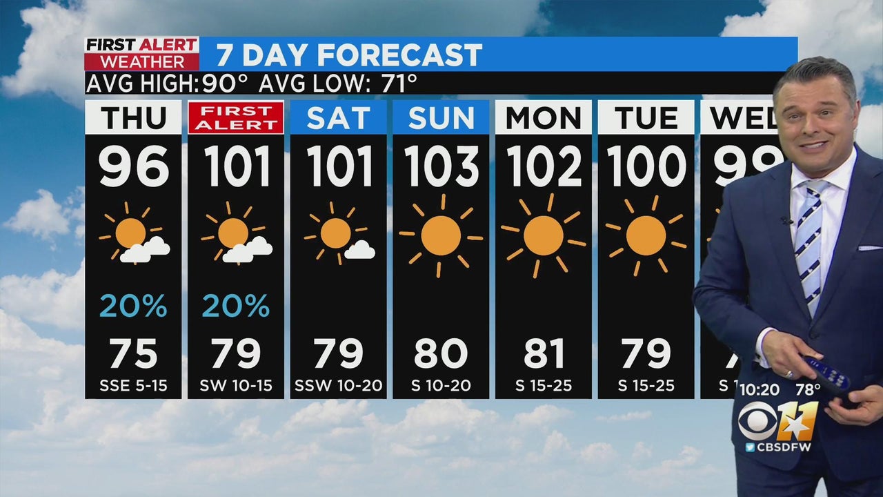 There is a 20% chance for rain Thursday before temperatures rise to the 100s this weekend.