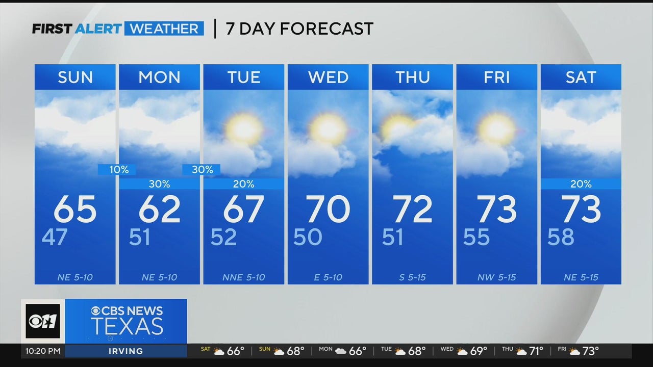 Partly cloudy skies Sunday night will allow temperatures to cool into the upper 40s.