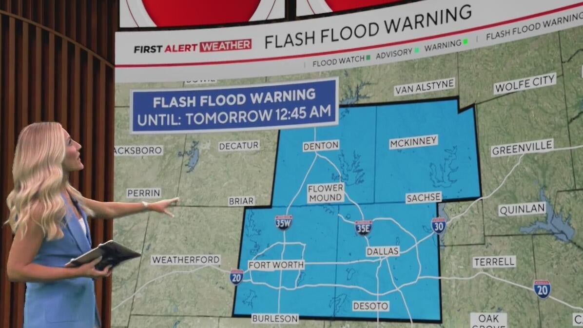 After bringing damaging winds and large hail earlier, storms over North Texas are slowing down and turning into a flooding threat. Heavy rain is expected to continue overnight across the Dallas–Fort Worth area, with possible impacts for the Wednesday morning commute.