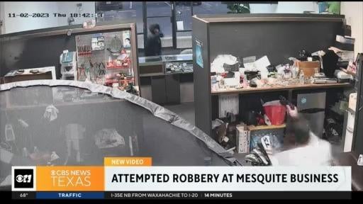There was an attempted robbery at a cash for gold store in Mesquite. Two suspects walked in, with one immediately pulling a gun. You can then see the business owner whips out his own gun and they both start shooting. Police say no one was hurt, but the suspects did take off and have yet to be identified or tracked down.