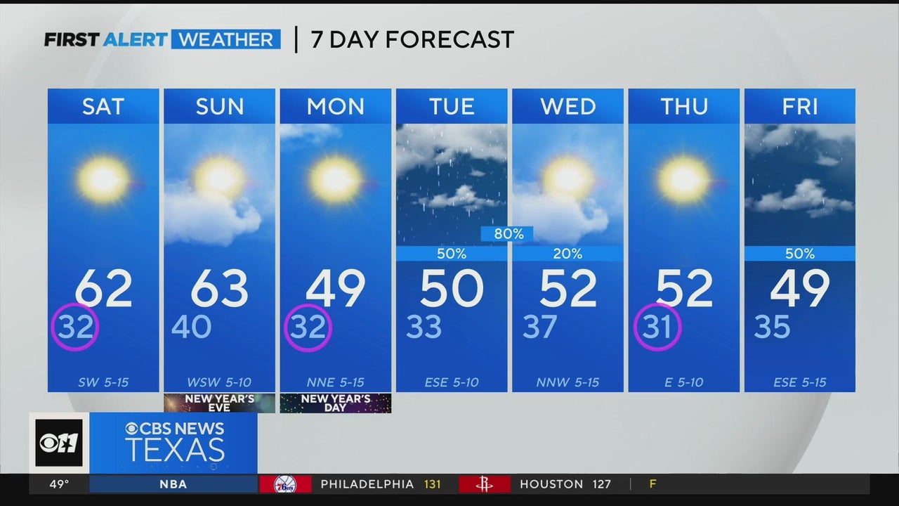 Temperatures will drop as we ring in 2024 Sunday night into Monday morning. Rain is on the way towards the middle of the first week of the year.