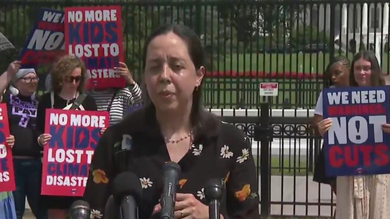 Texas parents gathered outside the White House Monday to call for more protections from what they say are "climate-fueled disasters." The group was surrounded by 27 trunks representing the 27 young girls lost when the flooding hit Camp Mystic along the Guadalupe River.