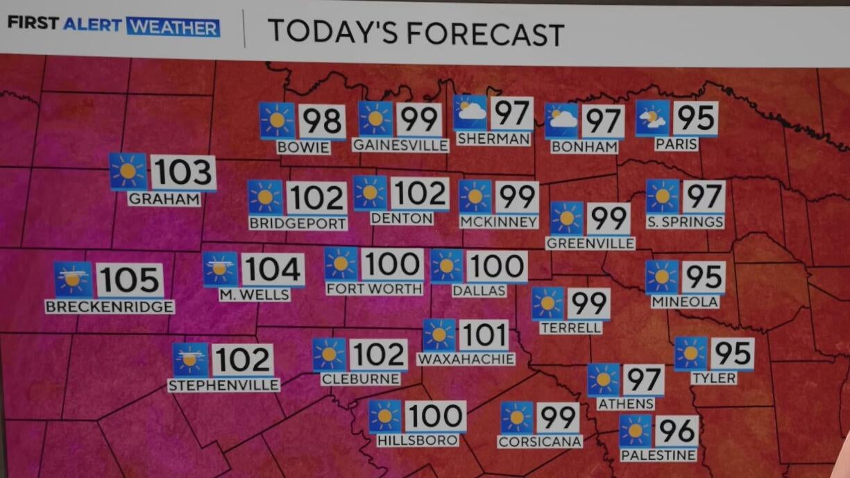 Thursday's high will reach 100 degrees in North Texas.