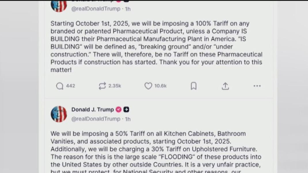 Trump announces new tariffs for Oct. 1, including 100% tax on pharmaceutical drugs
