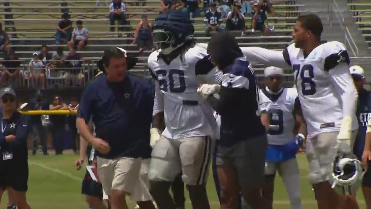 Tyler Guyton helped off the field after leg injury at Cowboys training camp
