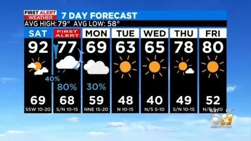 A strong front will take a hot Saturday into a cool Sunday.