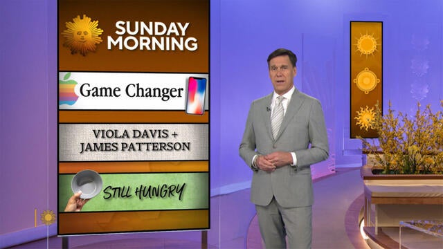 Hosted by Lee Cowan. Featured: The first 50 years of Apple; Viola Davis and co-writer James Patterson; "NCIS"; the persistence of hunger in America; former Goldman Sachs CEO Lloyd Blankfein; and the art of picture frames.