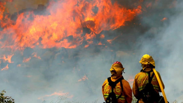 CBS News' Mireya Villarreal is in Duarte, California, where firefighters are working to contain two enormous wildfires.