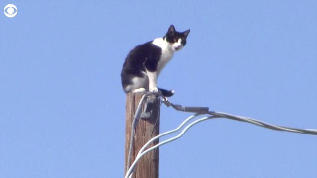 Cat rescued from top of telephone pole