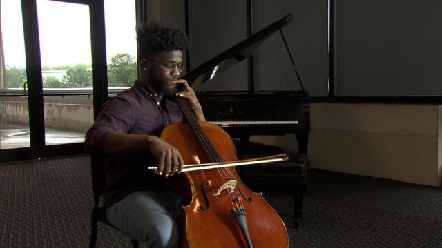 In this installment of our continuing series, A More Perfect Union, we meet a young college student who's overcoming poverty and hardship with the help of a stringed instrument. Eddie Adams plays lead cello in the George Mason University orchestra. He says he discovered his talent by accident. Chip Reid reports.