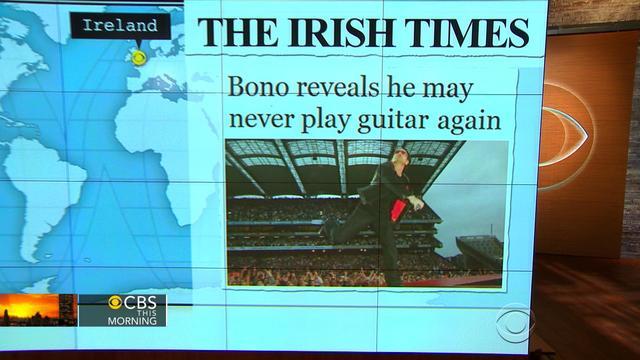 Headlines at 8:30: U2's Bono fears he'll never play guitar again