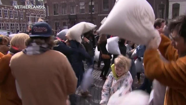 There was an international pillow fight over the weekend. More than a hundred cities around the world took part. CBSN's Vladimir Duthiers and Meg Oliver report on video from the event.