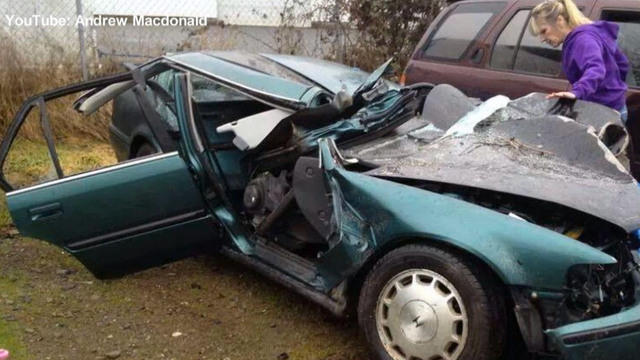 A driver who fell asleep at the wheel and crashed decided to videotape the moment he got cut out of the car. CBSN's Elaine Quijano and Anne-Marie Green show us the video, in which he's seen laughing and joking even though he was injured.