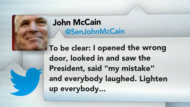 The president went to Capitol Hill yesterday to meet with Congressional democrats. Republican senator John McCain walked into the meeting, then very quickly walked out, saying he opened the wrong door. Charlie Rose reports.