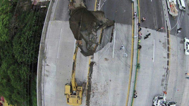 Padre e hijo, mueren atrapados en socavón de carretera en México