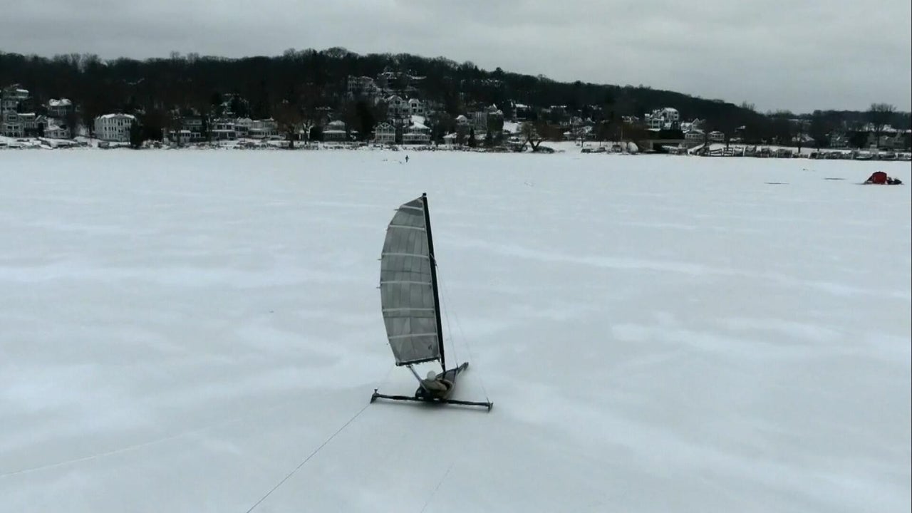 CBS News' Noel Brennan hits a frozen lake in Wisconsin to go ice sailing.