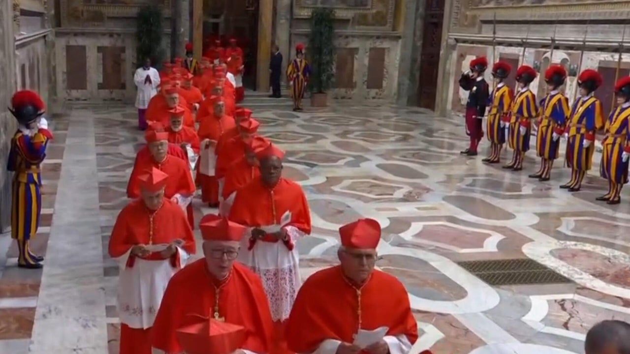 Procession into Sistine Chapel for conclave as cardinals sing "Litany of the Saints"