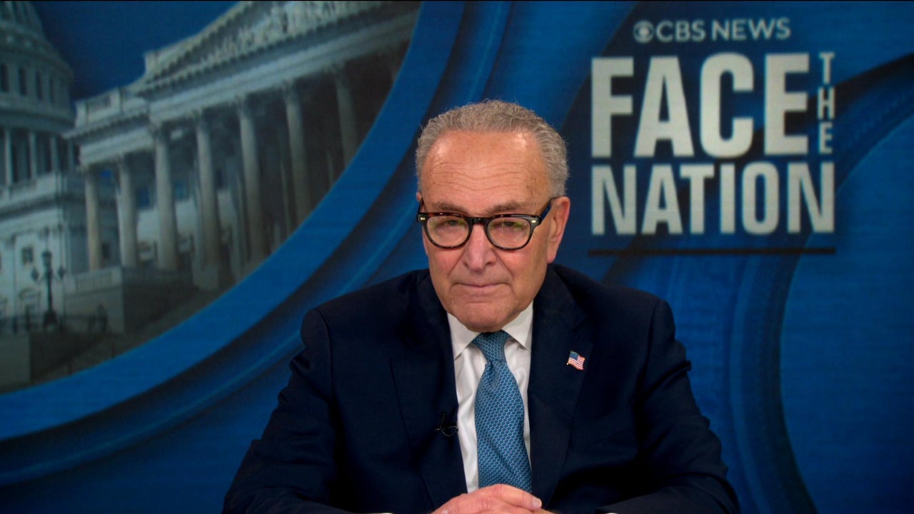 As the government shutdown threatens to stretch into a second week, Senate Minority Leader Chuck Schumer tells "Face the Nation with Margaret Brennan" that he has encouraged his Democratic members to sit down with Republicans. "The only way this will ultimately be solved is if five people sit together in a room and solve it," and he said those five people are President Trump, House Speaker Mike Johnson, Senate Minority Leader John Thune, House Minority Leader Hakeem Jeffries and Schumer himself.