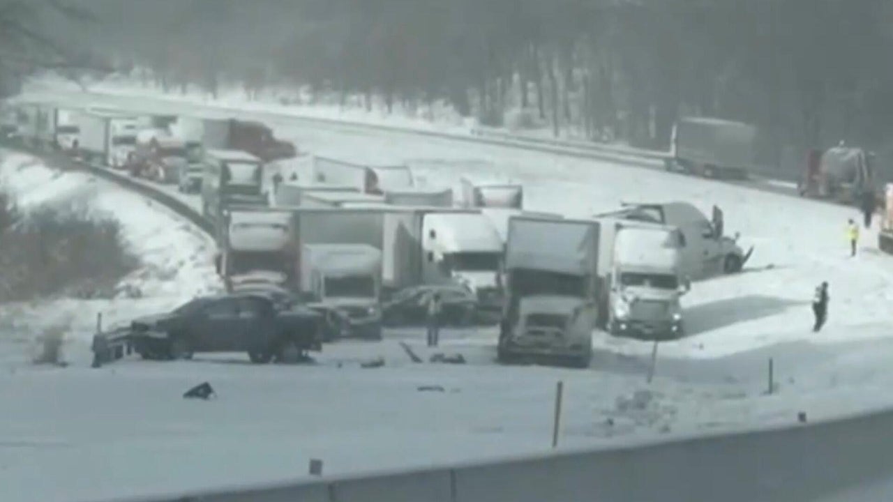 Snow-covered roads and poor visibility led to several crashes and traffic jams on interstates throughout the Northeast. The dangerous winter weather brought whiteouts to parts of Pennsylvania and New York. Rob Marciano reports.
